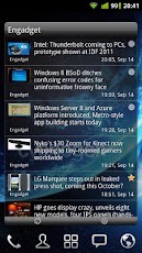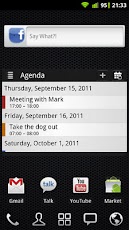 I widget sono per: Agenda & Calendario, Contatti, Segnalibri, Messaggi, Facebook, Twitter, Google Reader.