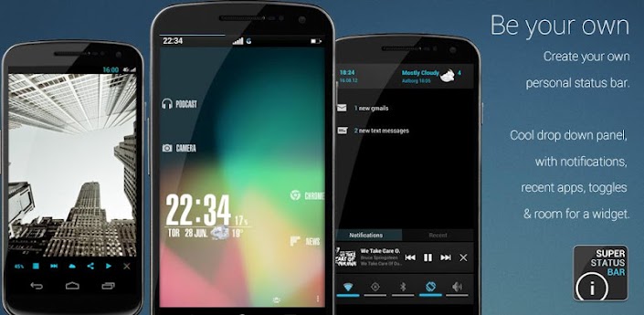 Super Status Bar permette di sostituire la Status bar (o "barra delle notifiche") in maniera semplice e veloce.