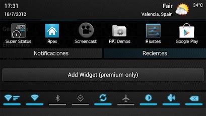 *Attivando Extended Experience potremo passare da questa nuova barra a quella originale semplicemente trascinando il dito da sinistra a destra (e viceversa) e potremo anche aggiungere i Toggles (una serie di icone per attivare wifi, bluetooth, gps... nella tendina) -se li aggiungiamo, dovremo abbassare e nascondere la tendina con lo stesso gesto: trascinando il dito dall'alto in basso-
