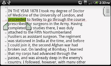 - Per evidenziare una parola o un'intera frase è sufficiente un doppio tap:la parola o frase evidenziata può essere copiata o tagliata utilizzando i comandi della toolbar.