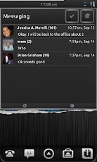 I widget sono per: Agenda & Calendario, Contatti, Segnalibri, Messaggi, Facebook, Twitter, Google Reader.
